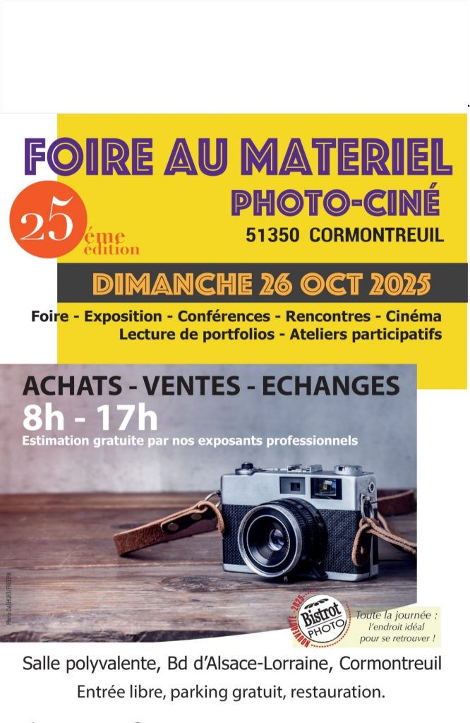« Spécial copinage »:  Dimanche 26 octobre 2025 : foire au matériel photo-ciné à Cormontreuil
