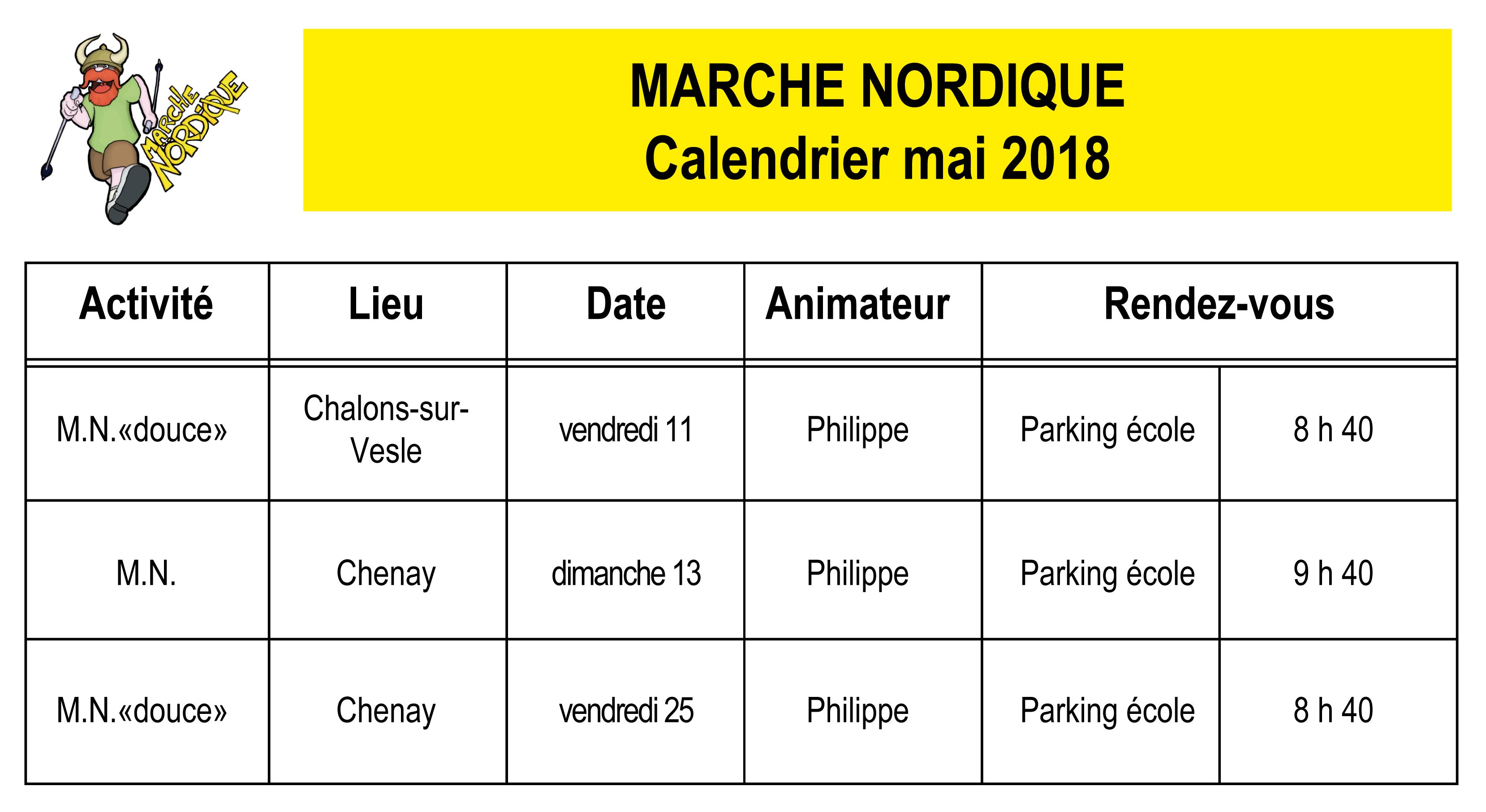- Le calendrier des marches nordiques du mois d'avril 2018