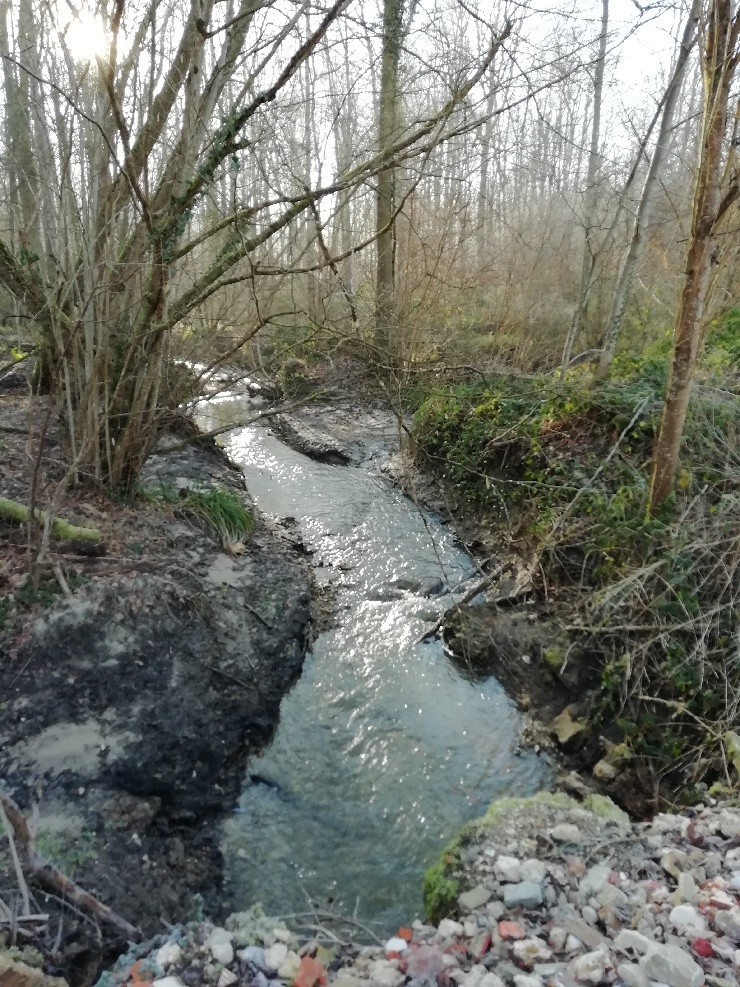 ...L'Ardre ,à quelques kilomètres de sa source (Saint-Imoges), après avoir traversé l'étang de Morieul...