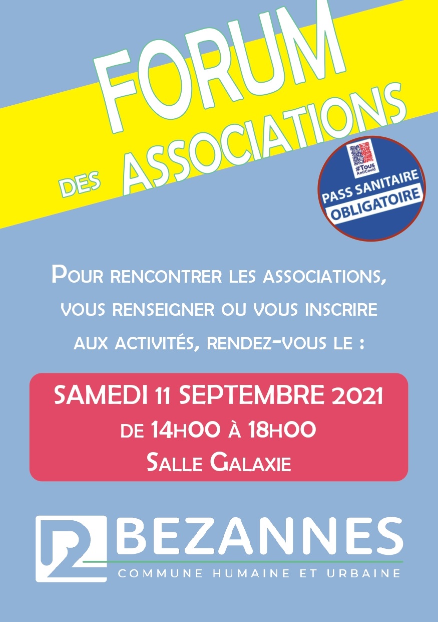 Le Forum des Associations se tiendra le samedi 11 septembre 2021 de 14h00 à 18h00 en salle Galaxie.